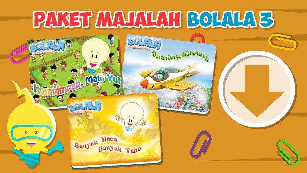 Terdiri dari 3 produk Majalah Bolala: Hompimpah Main Yu!, Aku Terbang Aku Senang, Banyak Baca Banyak Tahu. Isi paket dapat dilihat pada deskripsi masing-masing produk yang ada.